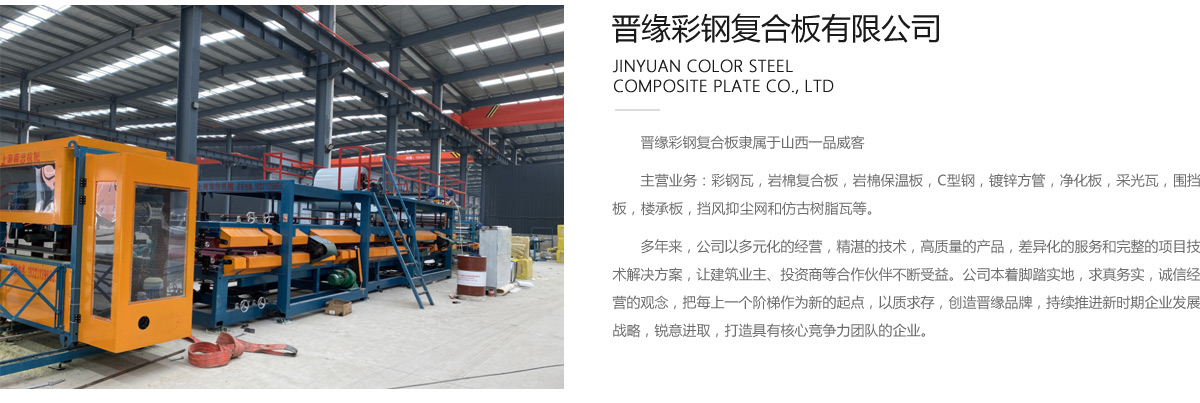 晉緣彩鋼復(fù)合板有限公司擁有一套完整的鋼結(jié)構(gòu)生產(chǎn)設(shè)備,和復(fù)合板生產(chǎn)線,可為客戶提供鋼結(jié)構(gòu)生產(chǎn)、加工、安裝一條龍服務(wù)。公司秉承“質(zhì)量保證、誠(chéng)實(shí)守信、合作共贏”的經(jīng)營(yíng)理念,贏得了廣大客戶的肯定與支持。誠(chéng)摯歡迎廣大新老客戶前來(lái)洽談合作!